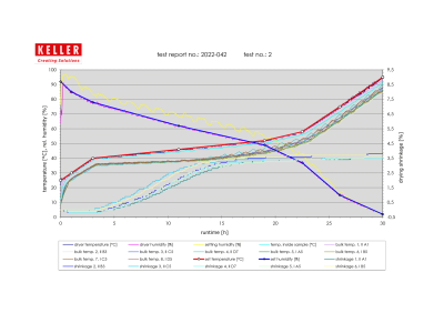 - measuring of shrinkage, temperatures, humidity and weight loss of the product