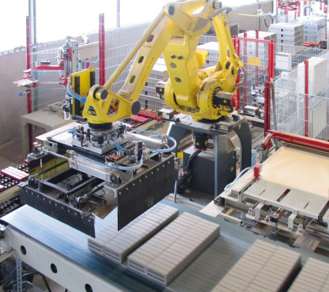 In clay brick plants are used robust palletising robots with payloads of up to 1300 kg. Delta robots are also used for sorting and packing smaller products. They have a total of 4 degrees of freedom with a four-axis wrist.