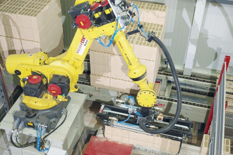 En las fábricas de ladrillos se utilizan robots paletizadores robustos con cargas útiles de hasta 1.300 kg. Para clasificar y embalar productos más pequeños, también se utilizan robots Delta, que disponen de un total de cuatro grados de libertad con una muñeca de 4 ejes.