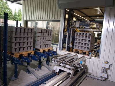 Pour éviter que les paquets d'expédition soient inclinés en raison de la somme des pentes, le paquet doit être tourné de 180° après chaque couche. Des lattes en bois sont déposées entre chaque couche de produits.