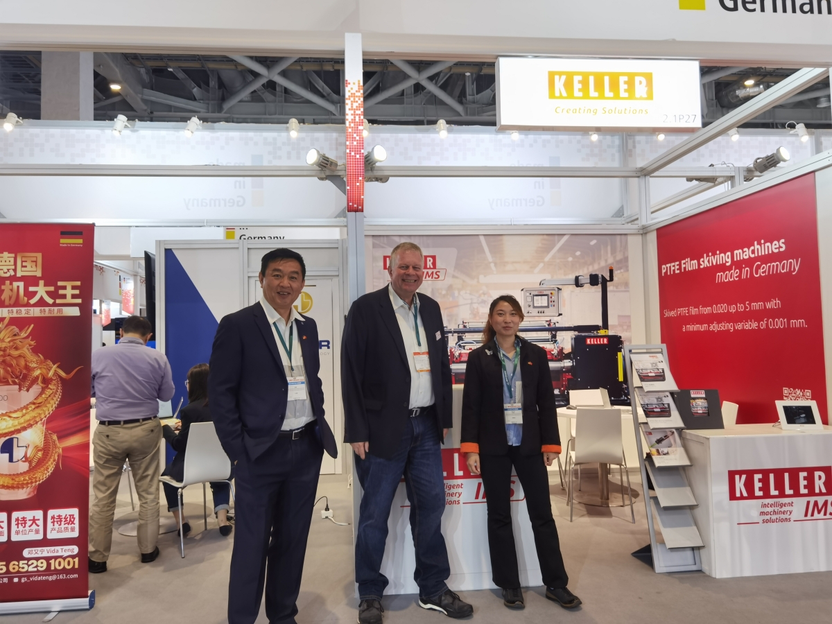 In diesem Jahr nahm KELLER erstmals an der Internationalen Fachmesse für die Kunststoff- und Kautschukindustrie, vom 23. Bis 26. April in Shanghai, teil. Martin Peters, Gebietsvertriebsleiter BU IMS sowie unsere Vertretung in China, die Firma German Tech Co. Ltd., konnten zahlreiche vielversprechende Gespräche führen, so dass die Erfolgsgeschichte der Folienschälmaschine fortgesetzt werden kann. Die Messe ist die wichtigste Plattform der Region zur Präsentation der neuesten Markttrends, bahnbrechenden Technologien und innovativen Lösungen für die Kunststoff- und Kautschukindustrie, mit den 3 Haupthemen in 2024: Intelligente Fertigung, innovative Materialien und umweltfreundliche Lösungen. In 2024 konnten 321879 Besucher und 4420 Aussteller gezählt werden.