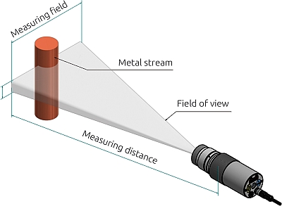Aufgrund der hohen Umgebungstemperatur am Messort kommen Pyrometer mit einem getrennten optischen Messkopf zum Einsatz. Ein Lichtleiter überträgt die Infrarotstrahlung auf die in einem sicheren Bereich montierte Elektronik.
